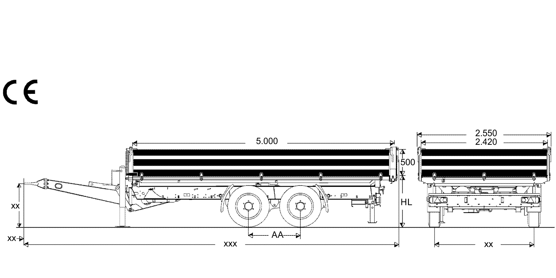 Vielseitige Transportmöglichkeiten stellt Müller Mitteltal mit dem neuen Tandem-Dreiseitenkipper KA-TA-R Masterline als Geräteträger für den Maschinentransport bereit. Ein Konzept, das nicht nur Bauunternehmer, sondern auch der Garten- und Landschaftsbau sowie Kommunen schätzen. Das zulässige Gesamtgewicht reicht von 11,9t bis 14,4t. Für diese Doppelfunktion ist das Fahrgestell des Dreiseitenkippers zusätzlich mit Alu-Einschubrampen ausgerüstet. Die 5,0m lange Ladefläche steht wahlweise in 2,42m oder 2,25m Innenbreite zur Verfügung. Das Fahrgestell ist in Serie feuerverzinkt. Kippbrücke und Bordwände können auf Wunsch feuerverzinkt angeboten werden, wobei die Bordwände selbstverständlich auch in jeder Kundenfarbe zusätzlich lackiert werden können.