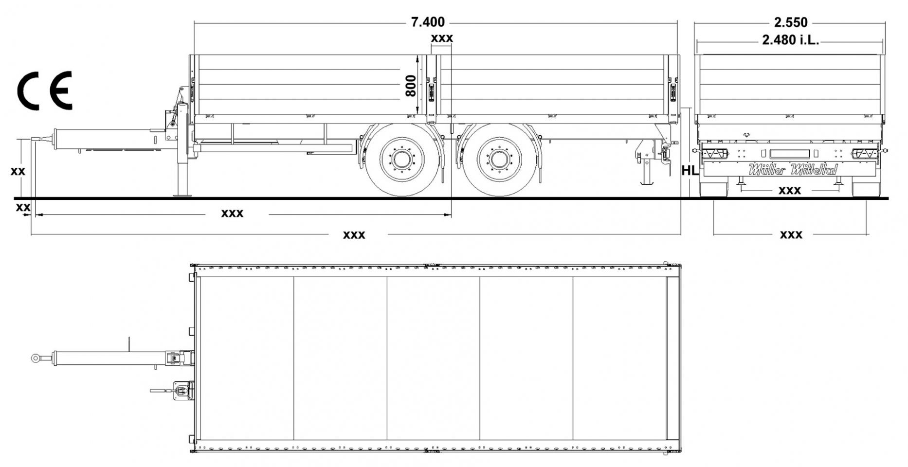Radstand (Öse bis Mitte Aggregat) 5.460mm