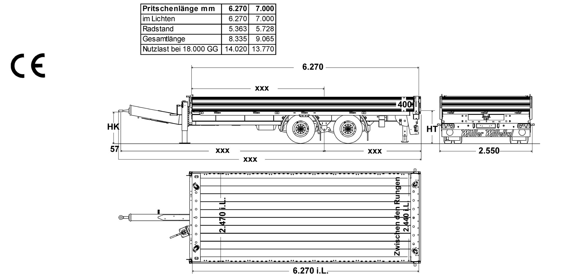 Fahrgestell feuerverzinkt. 2 Ablagefächer zur Aufnahme von ALU-Einschubrampen